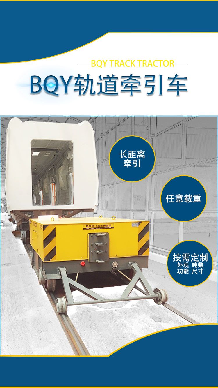 该产品是由蓄电池提供电源的轨道平车,蓄电池安装在平车的内部源通过电气控制系统,给直流牵引电机提供电力,使平车启动、停止、前进、后退、调速等。它能够在 S 型轨道、弧型轨道及易燃易爆、摆渡场合使用,平车上可以加装液压升降系统。平车直流电机有启动平稳、启动力距大、对减速机冲击小、电压低、使用寿命长等优点,运行距离不受限制,对轨道铺设要求不高,适用于长距离运输场合。